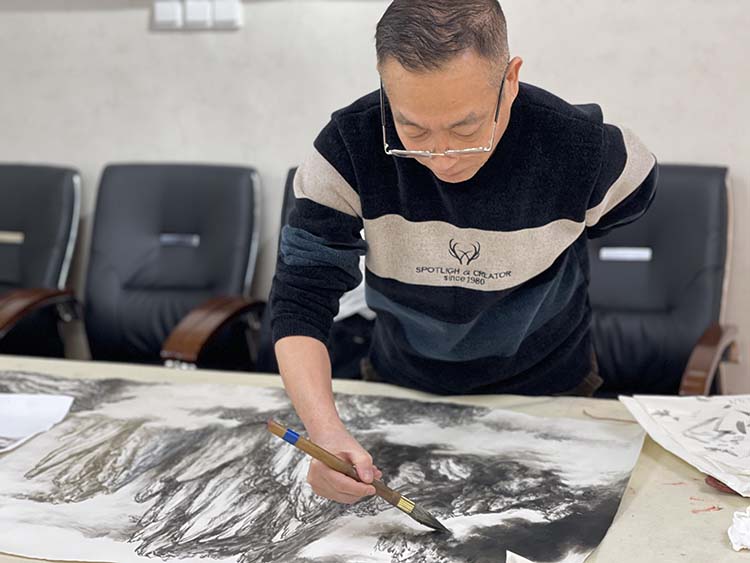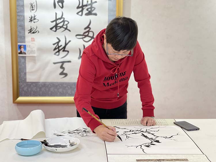 国学经典书画院张国兴院士在笔会上进行国画创作: