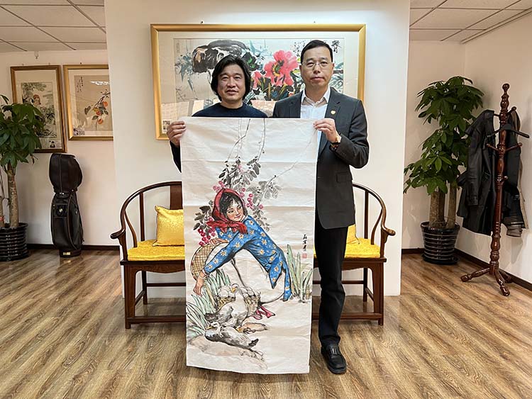 邓小君院长与莫燕华院士的国画作品《昭君出塞》合影留念